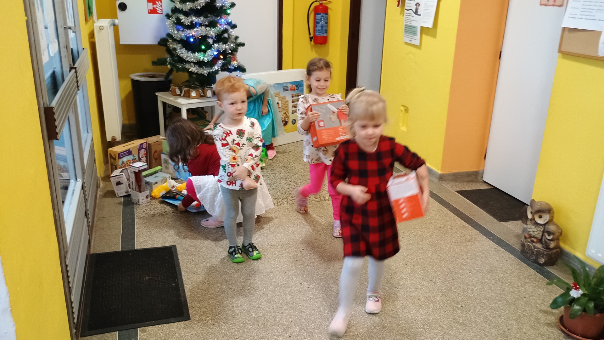 I letos nám do mateřské školy zavítal Ježíšek a přinesl dětem spoustu krásných dárků. Děti už od rána s napětím očekávaly, až uslyší zvoneček. Abychom si ukrátili čekání, krájeli jsme jablíčka a s napětím sledovali, zda se uvnitř objeví hvězdička. Poslouchali jsme vánoční koledy, ochutnávali cukroví a pouštěli lodičky. Když nastal ten správný okamžik, šli jsme společně ke stromečku. Než se děti pustlily do rozbalování dárků, poděkovaly Ježíškovi zazpíváním koled. Při rozbalování dárečků radost a úsměvy dětí naplnily celou třídu. Vánoční atmosféru jsme si užili také venku, kde jsme společně nazdobili stromeček. Celý den se nesl v duchu pohody, radosti a společného prožívání vánočního času.